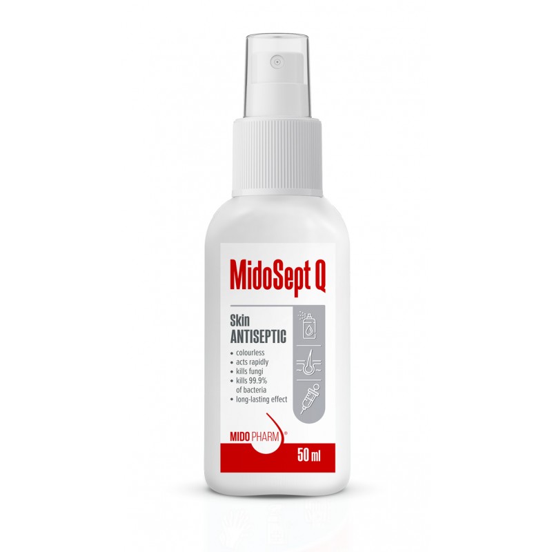 MidoSept Q is a ready-to-use, quick-acting uncolored skin antiseptic based on Quaternary ammonium compounds.