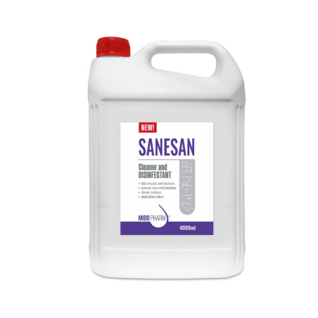 Concentrated cleaner and disinfectant for sanitary rooms, sinks, tiles and other porcelain and ceramic surfaces.